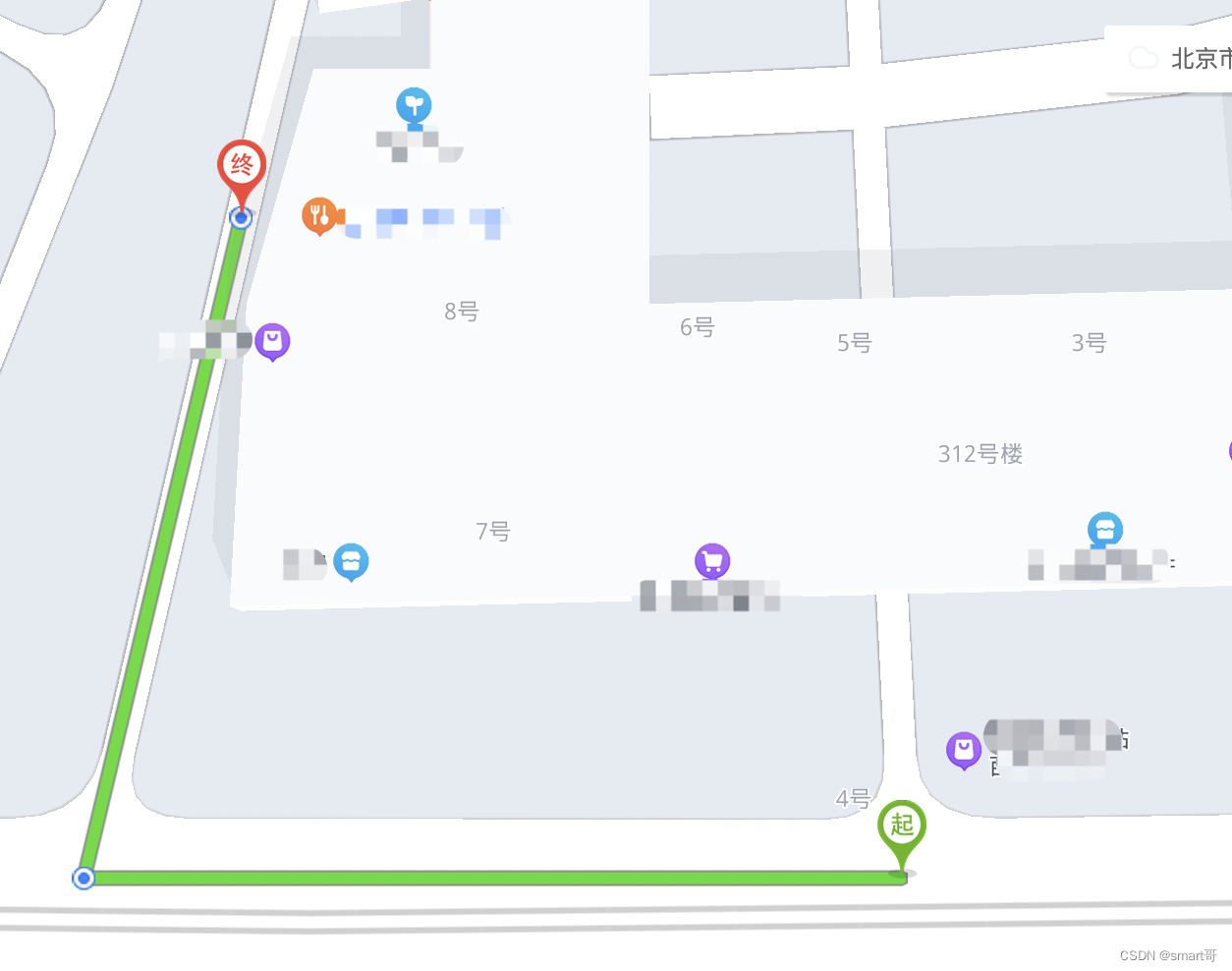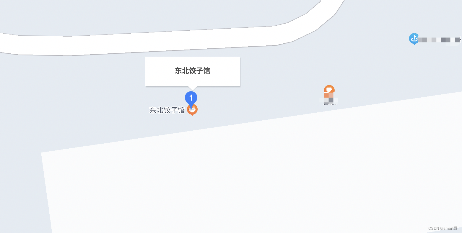 很多时候,我们要导航去一个地方就会用到这类需求。打开百度或者高德地图,起始位置就定位用户当前位置,目的地定位为搜索到的地址,比如上面的 东北饺子馆。