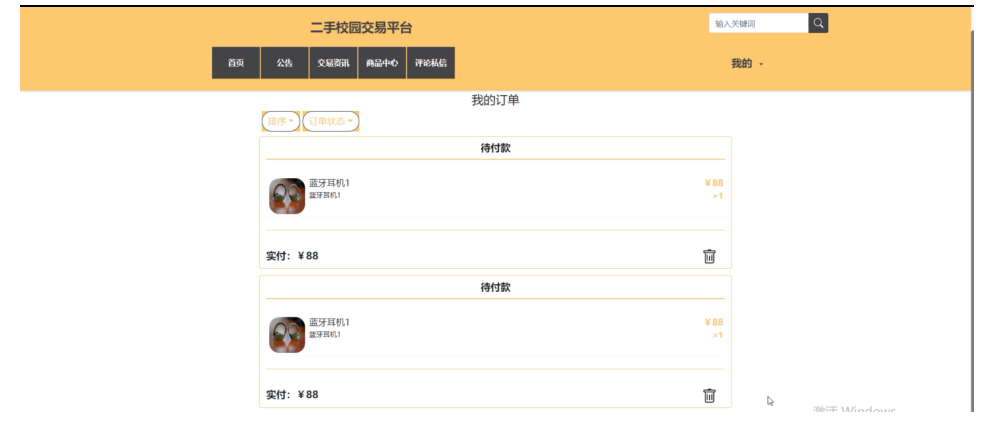 (6)我的订单:用户在提交订单后,可以对提交的订单进行管理。
