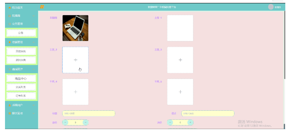 (6)轮播图管理:管理员可以对二手校园交易平台中首页显示的轮播图发布到系统当中,让用户及时的查看到系统信息,进行合理安排。