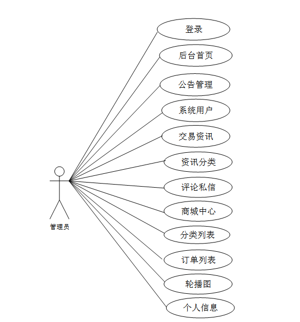 web后台管理上的管理员是维护整个二手校园交易平台中所有数据信息的。管理员角色用例如图2-5所示。