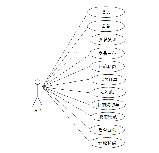 通过2.3功能的分析,得出了本二手校园交易平台的用例图: