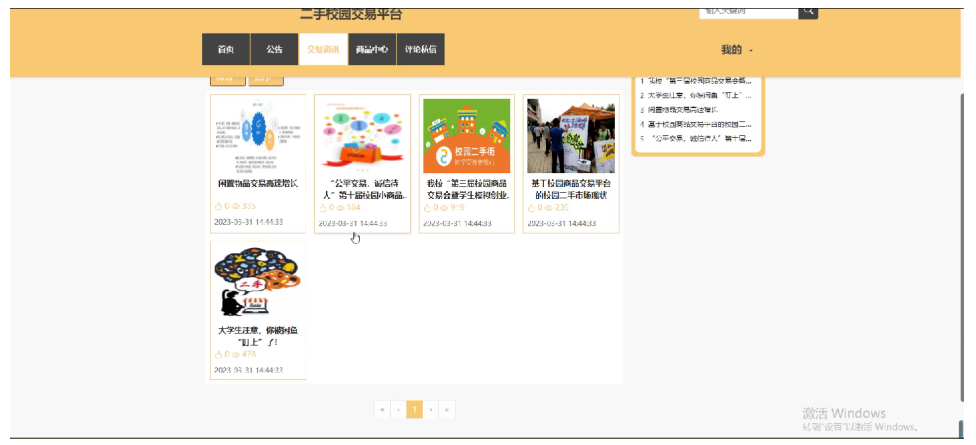 二手校园交易平台中的管理人员是可以对二手校园交易平台内的资讯信息进行维护和管理的。交易资讯列表界面如下图4-11所示。