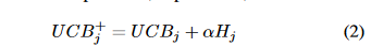 我们首先在标准UCB等式中加入了一个术语Hj,以便更多的模拟类似人类的行为,和一个调谐常数α以便均衡探索,开发,和类人类建模。