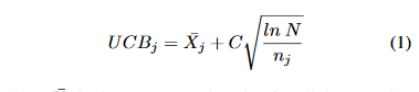 其中Q是两个时期中最大的参数,max是分支中实现的最大价值,Xj是原先UCB中一样的平均价值。