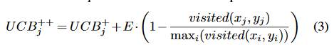 其中E是一个奖励的探索期贡献的常数,visited(xj,yj)代理当前地图区域被玩家访问的次数。