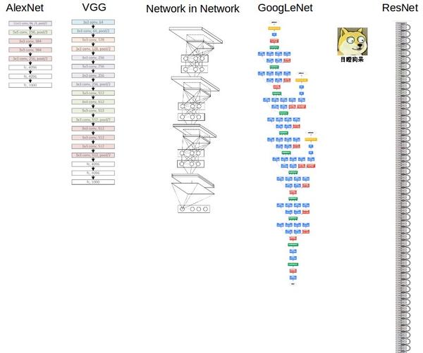 各处整理了一些资料,有时间好好看先来一张不是很相关的有趣的对比图。关于卷积神经网络CNN,网络和文献中有非常多的资料,简单整理一下,以备查阅之需。Alexnet,2012年GoogleNet,2014年VGG,2014年Deep Residual Learning,2015年Lenet就从Lenet说起,可以看下,可以试着理解每一层的大小,和各种参数