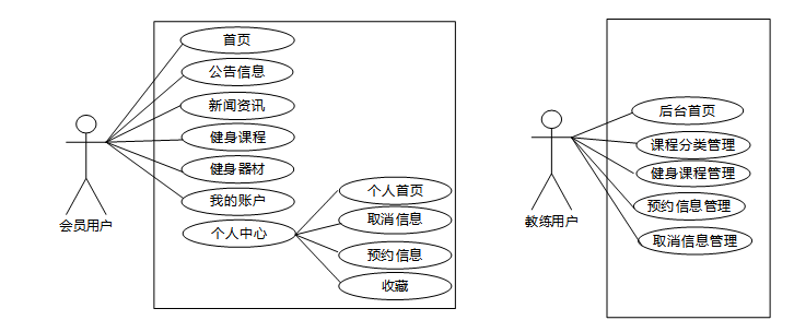 健身房管理系统中用户角色用例图如图2.1所示: