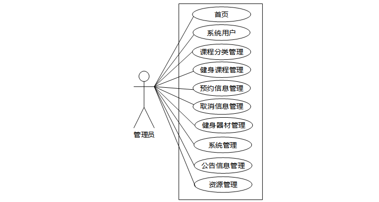 健身房管理系统中管理员用户用例图如图2.2所示:
