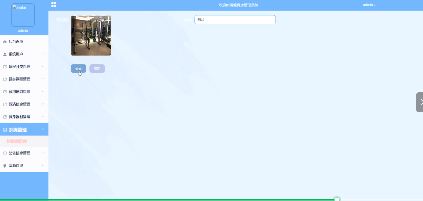 健身器材管理:管理员可以管理健身房的器材信息,包括添加、编辑、删除器材等操作,以确保器材的完好性和可用性。