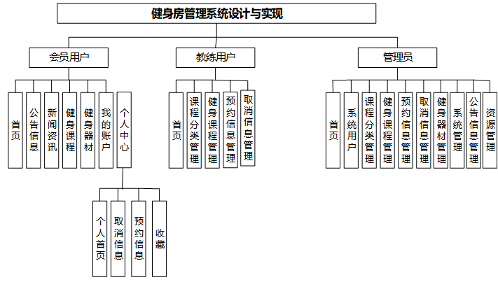 基于springboot技术的健身房管理系统的设计与实现,系统分为会员用户、教练用户和管理员用户这三大部分,具体需求分析如下: