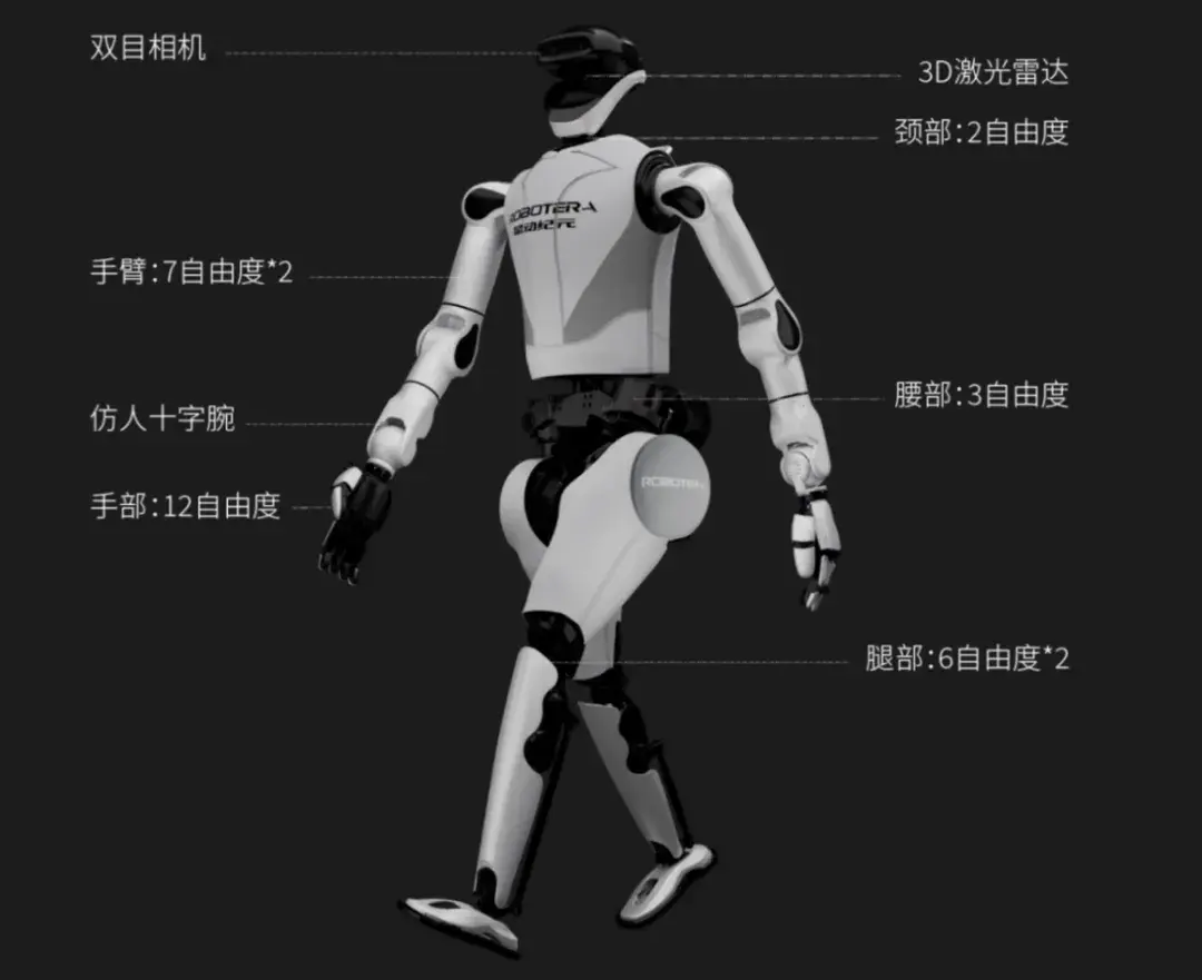 在操作层面,其核心操作单元由仿人机械臂与灵巧手构成:手臂采用7轴设计,配合十字轴手腕,实现了前后±90°与侧摆±45°的广阔摆动范围,赋予其接近人类手臂的灵活性。