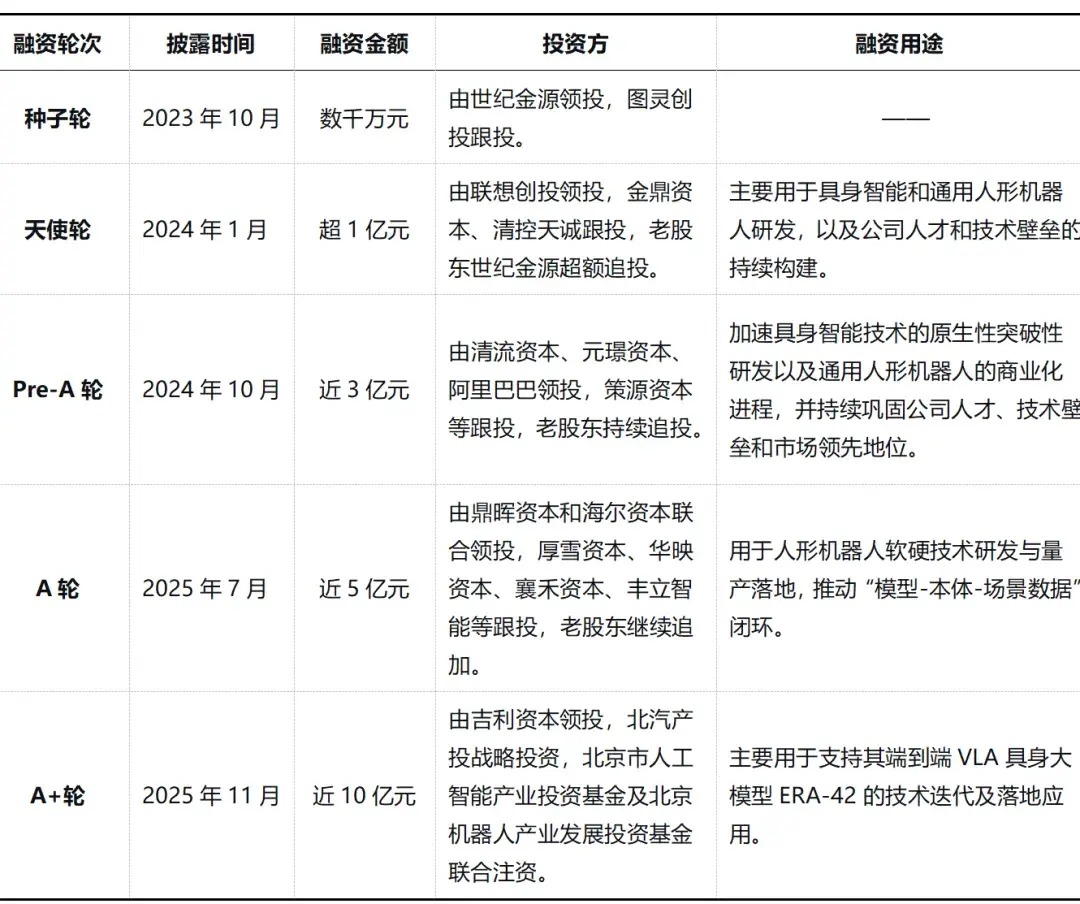 星动纪元融资情况(机器觉醒时代制图)