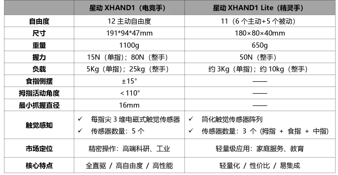 这两款产品形成星动纪元灵巧手产品线的 "高低搭配":XHAND 1以12个主动自由度和全直驱方案成为 "性能天花板",适合工业精密操作和专业科研;XHAND 1 Lite则以轻量化设计和适中性能主打家庭服务和教育市场。