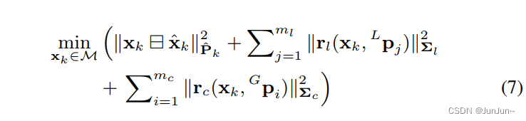 需要注意的是,如果在接收到的是激光雷达数据,则方程 (7) 中只有激光雷达观测模型的残差