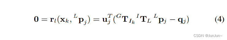 然后在由ikd-tree中构成的激光雷达全局地图中搜索最近5个点,拟合一个平面。因此,方程 (4) 中暗含了一个在状态的观测模型。考虑到了
