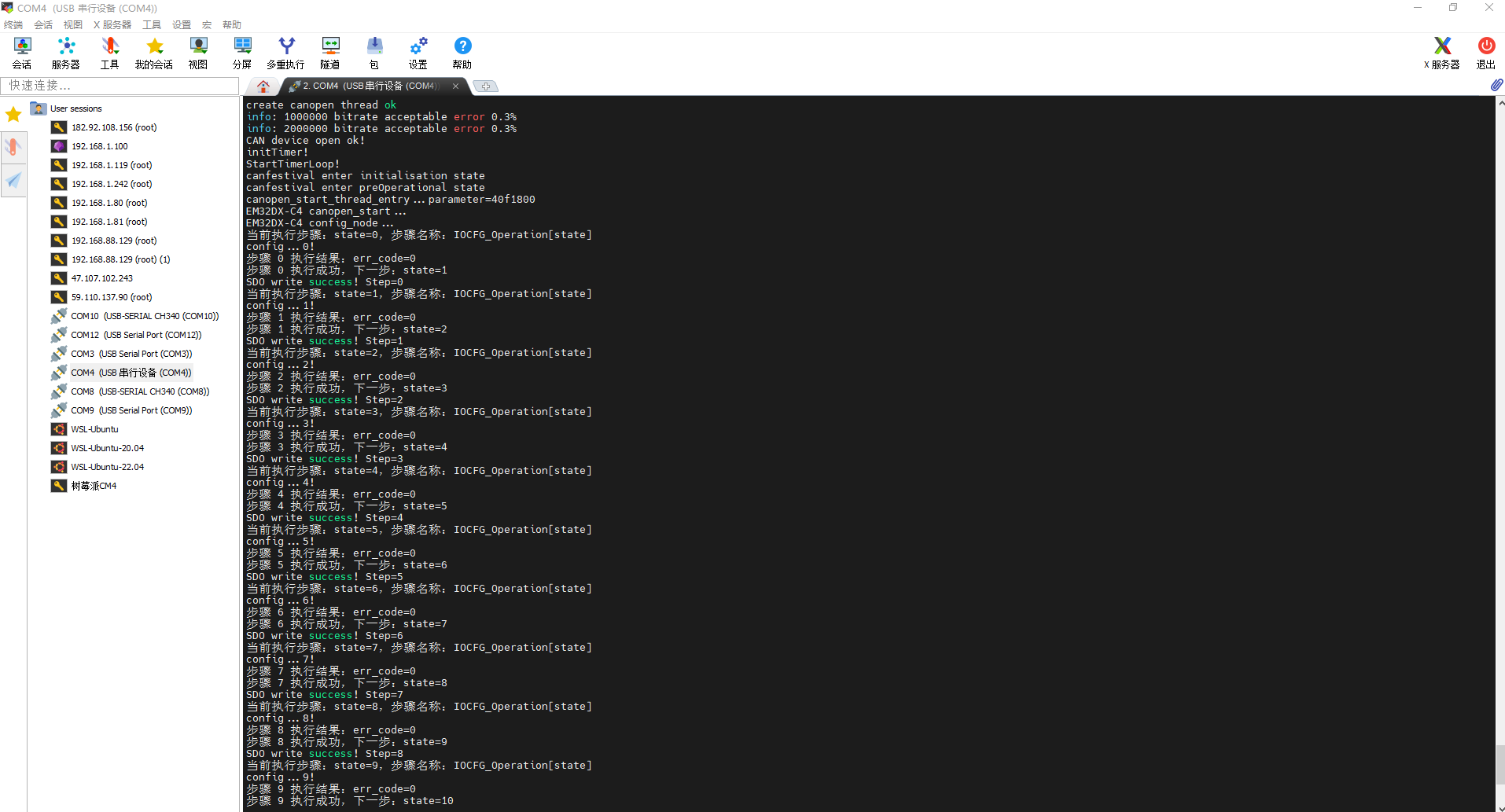 (1)执行 canopen_start 指令,完成 CANOpen 服务的初始化与启动;