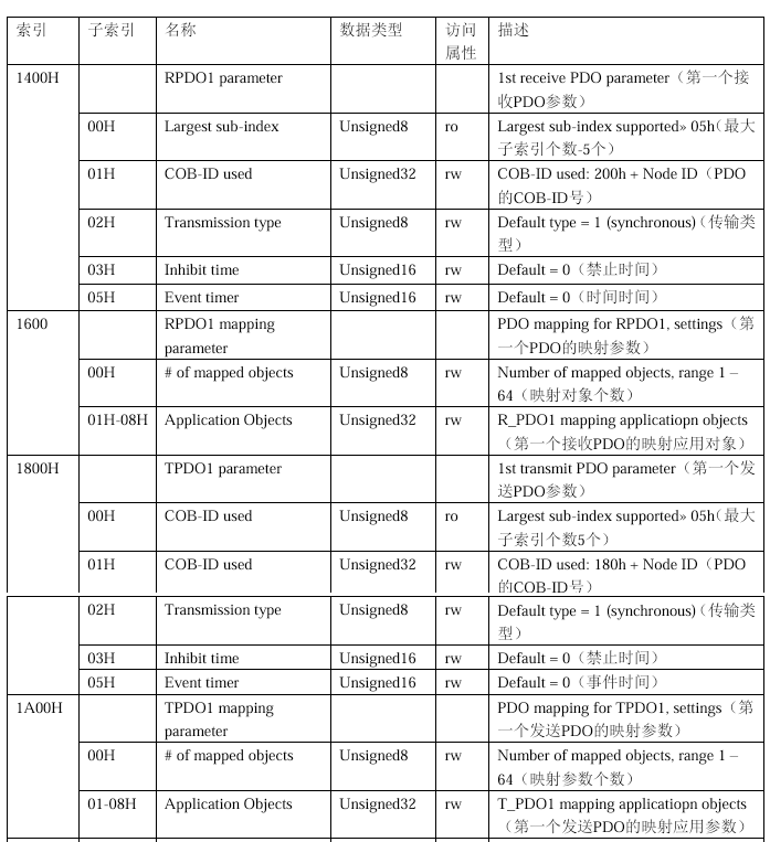 (3)SDO(服务数据对象):对象字典参数访问,支持快速下载和分段下载,用于设备配置和参数调整