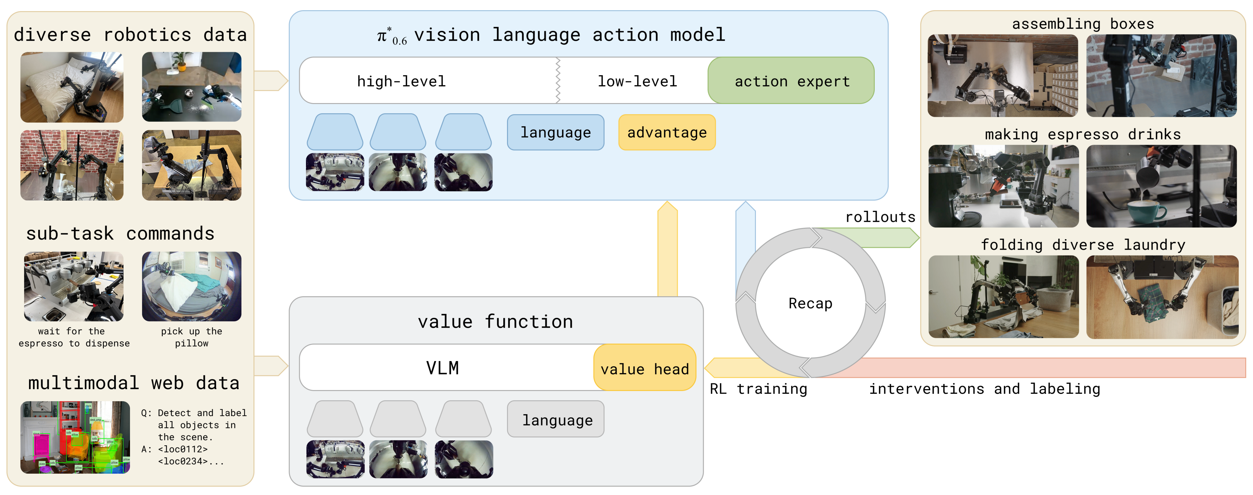 详见此文《π∗0.6——RL微调流式VLA π0.6:先基于演示数据做离线RL预训练,再在线RL后训练(与环境自主交互,从经验数据中学习,且必要时人工干预)》