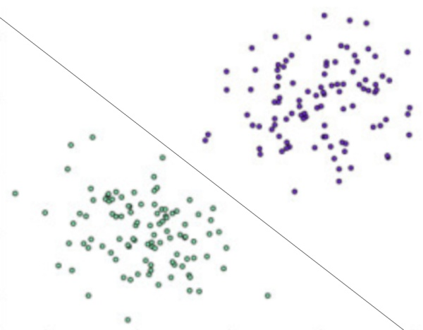 二维平面上的点只有两个输入特征(横轴坐标和纵轴坐标),一条直线就可以分类。如果输入数据有更多维度的特征,那么就需要建立同样多维度的模型,高维度上的分类模型也被称为超平面。