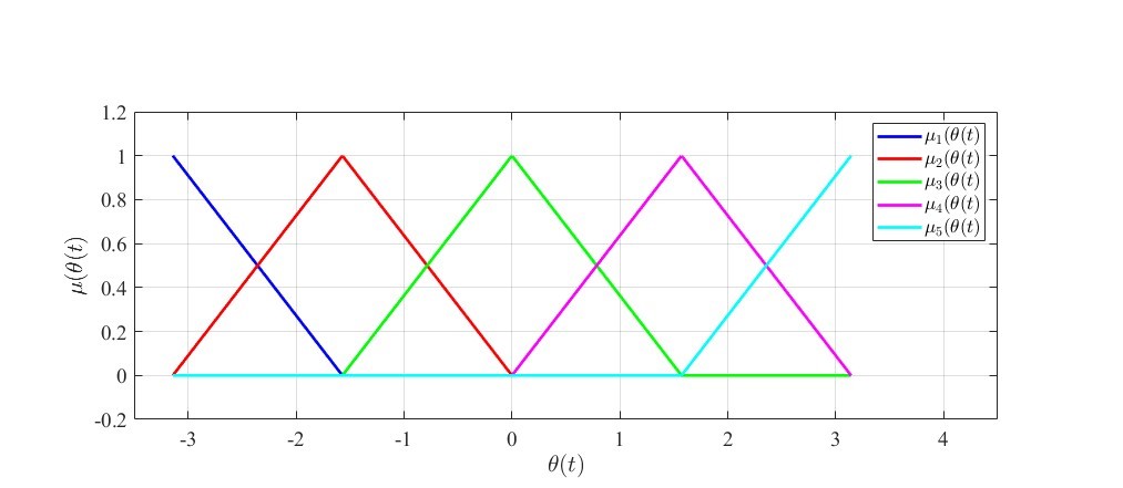 的线性形式中。该项是由于连杆连接两个不同坐标系所带来的,而机器人中不同坐标系(关节)连接又不可避免也极为复杂。这种情况就是我们经常听到“机器人系统具有强非线性”中非线性的由来,这也是我们需要利用T-S模糊技术线性化的首要目标。该例是单关节机器人的动力学,也是最简单的非线性构成,我们从这种简单情况出发讲解机器人是如何用TS模糊技术线性化的。