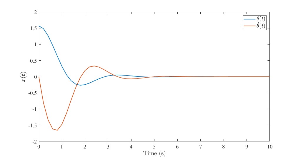 假设初始状态为,此时机械臂相当于是平举。假如不施加控制力矩,机械臂按理说应该受重力作用下摆运动,然后收摩擦阻力影响摆幅逐渐减小,直至停留在