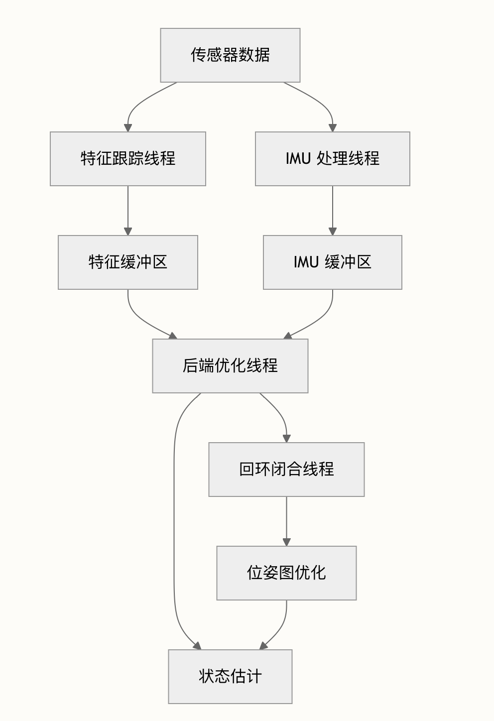 VINS-Fusion 采用多线程架构进行并行处理: