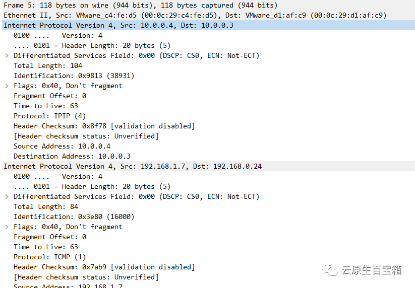 Kubernetes 中 IPIP 与 VxLAN 类似,也是通过网络隧道技术实现的。与 VxLAN 差别就是,VxLAN 本质上是一个 UDP 包,而 IPIP 则是将包封装在本身的报文包上。