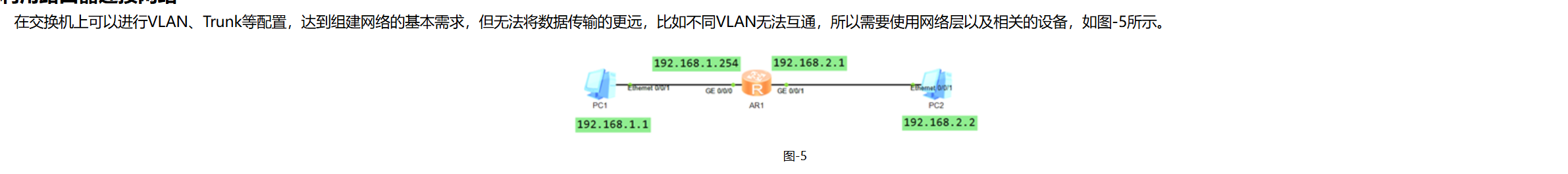 - [Huawei-Ethernet0/0/5]port link-type access //设置接口类型为接入链路