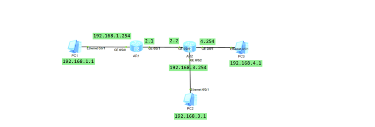 - [Huawei-GigabitEthernet0/0/1]ip address 192.168.2.1 24