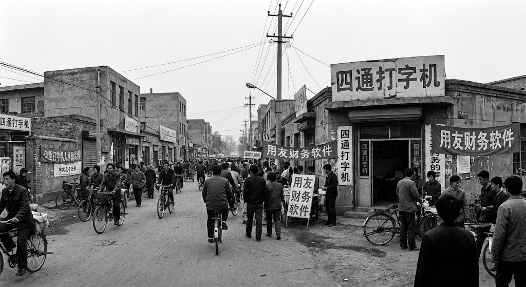 - 摩托车大军: 在无数个小县城里,代理商骑着摩托车,后座箱里装着光盘和“加密狗”(Dongle),穿梭在工业区。他们是那个年代的“数字化布道者”,手把手教那些50岁的老会计怎么握鼠标,怎么双击。