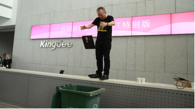 在发布会现场,徐少春当众举起一把巨大的木质算盘,狠狠地砸向地面。