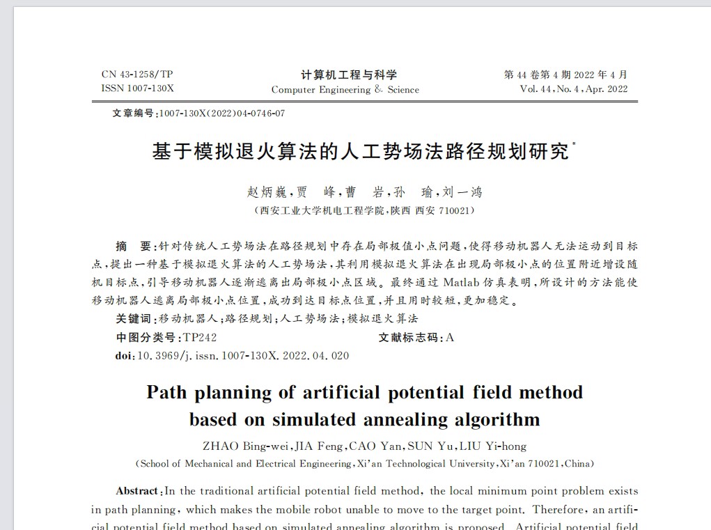 除了改进斥力函数,我们还引入模拟退火算法。模拟退火算法可以让机器人有一定概率跳出局部极小值。
