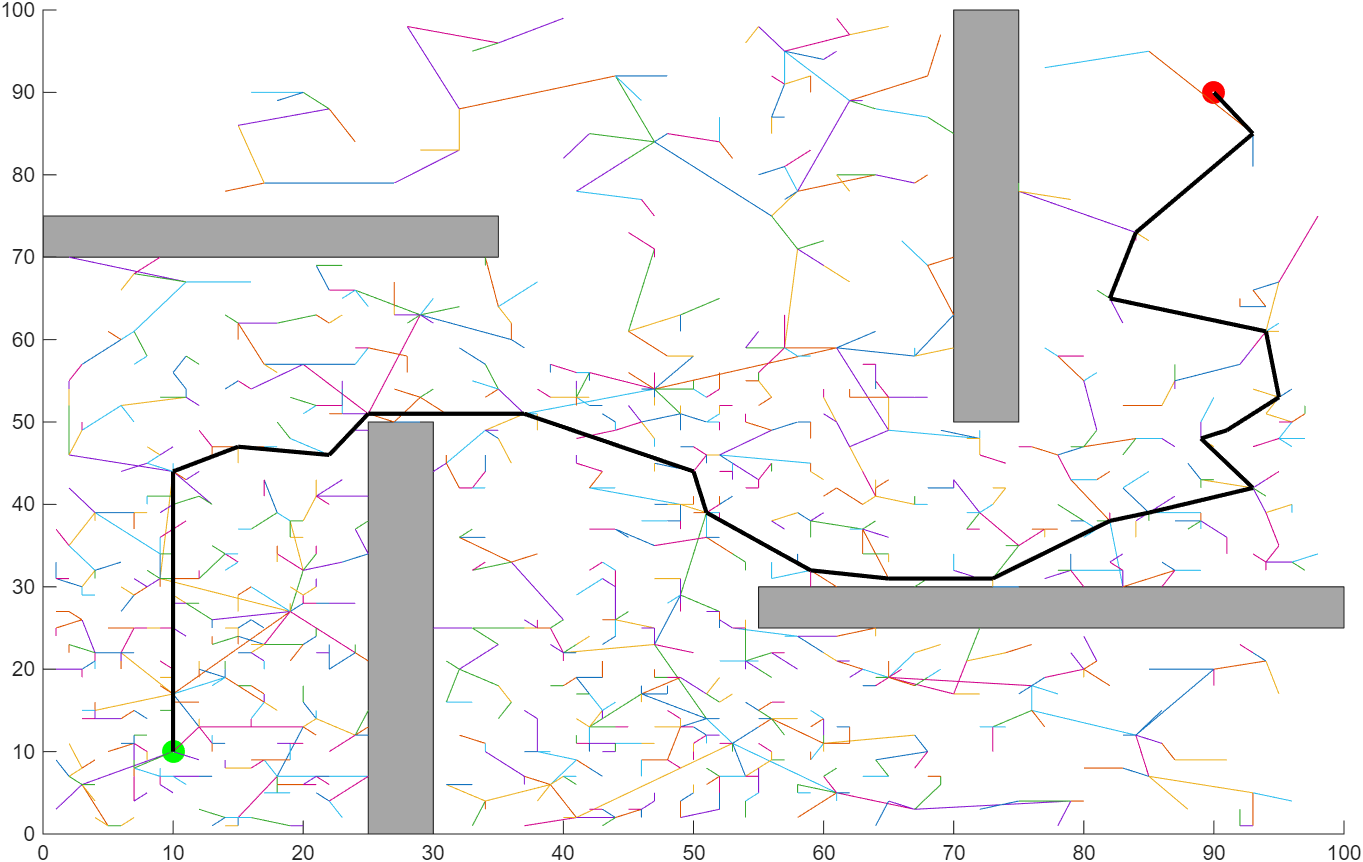 RRT 算法由 Steven M. LaValle 等人于 1998 年首次提出 ,旨在攻克高维配置空间中路径规划的难题。在当时,传统搜索方法在高维空间中面临着 “维度诅咒”,计算量呈指数级增长,效率极低。RRT 算法的出现,宛如一道曙光,为高维空间路径规划带来了新的思路。