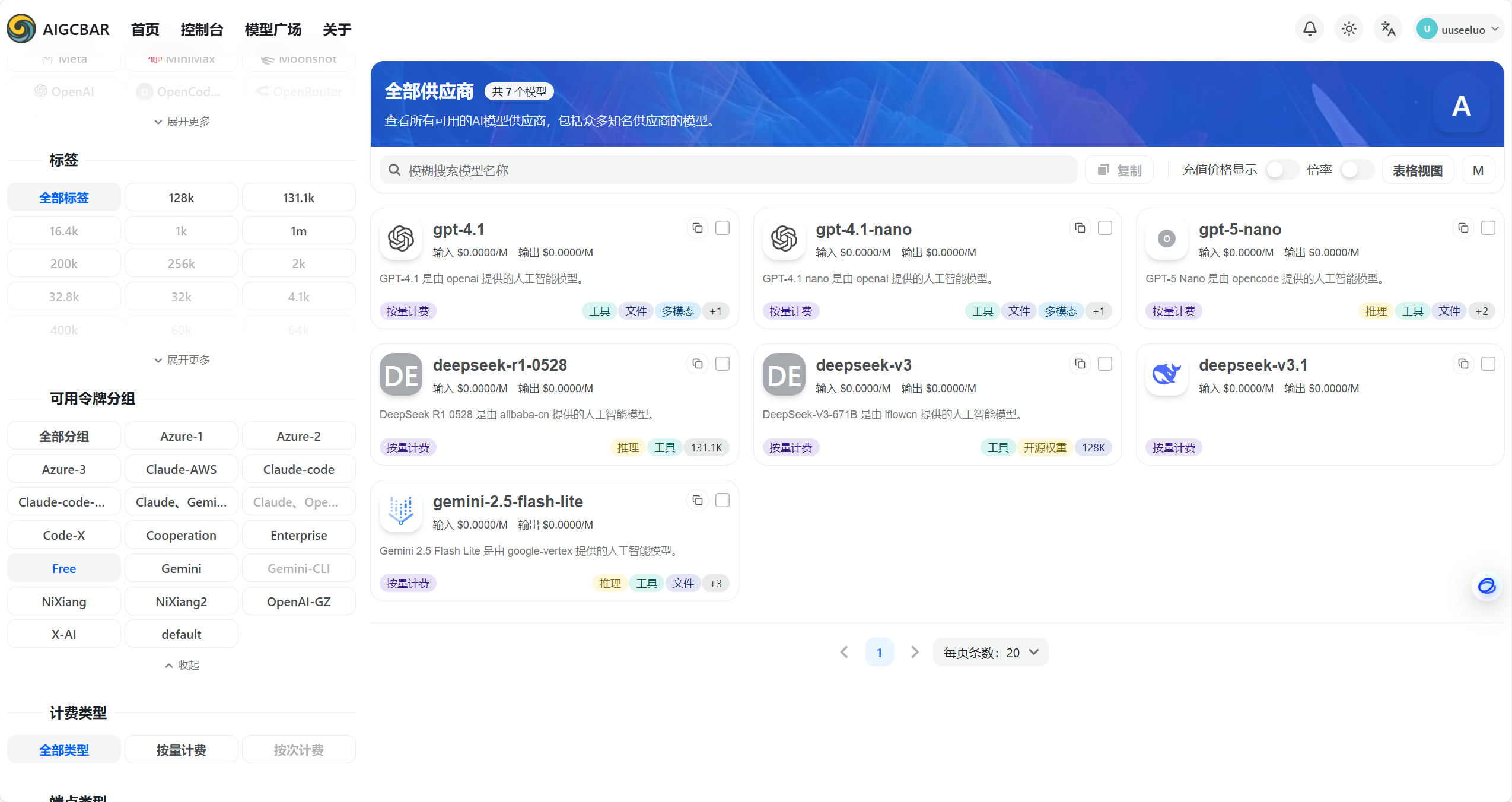 api.aigc.bar平台为用户提供了多个免费使用的AI模型,这些模型涵盖了多个领域和能力水平。目前应用代码中预配置的免费模型包括以下几个:首先是GPT系列模型中的gpt-4.1-nano和gpt-5-nano这两个轻量级版本,这些模型虽然参数量较小,但在基础的文本生成和问题回答方面表现可靠,适合那些对响应速度有要求或输入量较小的场景。其次是DeepSeek系列的deepseek-r1-0528和deepseek-v3两个模型,其中r1模型是推理专向模型,特别擅长数学、编程等需要逻辑推理的任务,会返回详细的思考过程;deepseek-v3是多用途模型,在知识问答、文本生成等方面表现均衡。此外还有deepseek-v3.1,这是v3的一个改进版本。最后是gemini-2.5-flash-lite,这是Google最新推出的轻量化Gemini模型,在多模态理解和快速响应方面表现优异。这些免费模型的可用额度通常有限制,新用户一般会获得初始的免费试用额度,具体的额度和有效期需要用户在平台上查看。