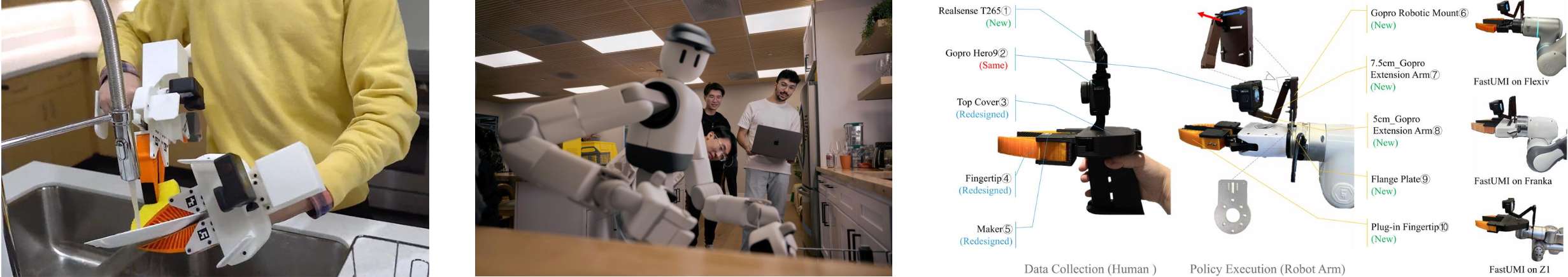 - 而在 UMI 路线 上,国内能够将其真正跑到规模化、工程化、持续交付阶段的团队,目前并不多,国内鹿明机器人的丁琰团队,是较早系统性投入 UMI 研究的,十二月也刚刚发布了多模态无本体数据采集软硬件系统FastUMI Pro,采集效率提升3倍,成本降至传统方案的1/5。