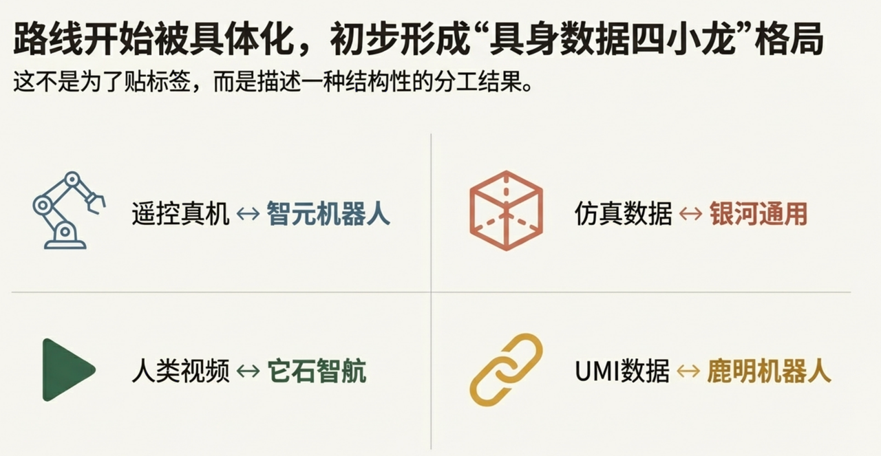 在这一格局下,具身数据的“四小龙”更像是一种阶段性结构描述。