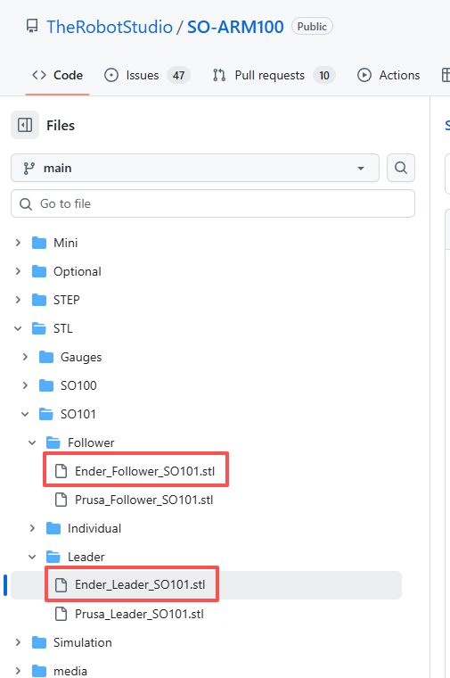 而主动臂leader 使用3种不同减速比的舵机,STS3215 伺服 7.4V,1/191 齿轮 (C044),STS3215 1/345 7.4V(C001) ,STS3215 伺服 7.4V,1/147 齿轮 (C046)