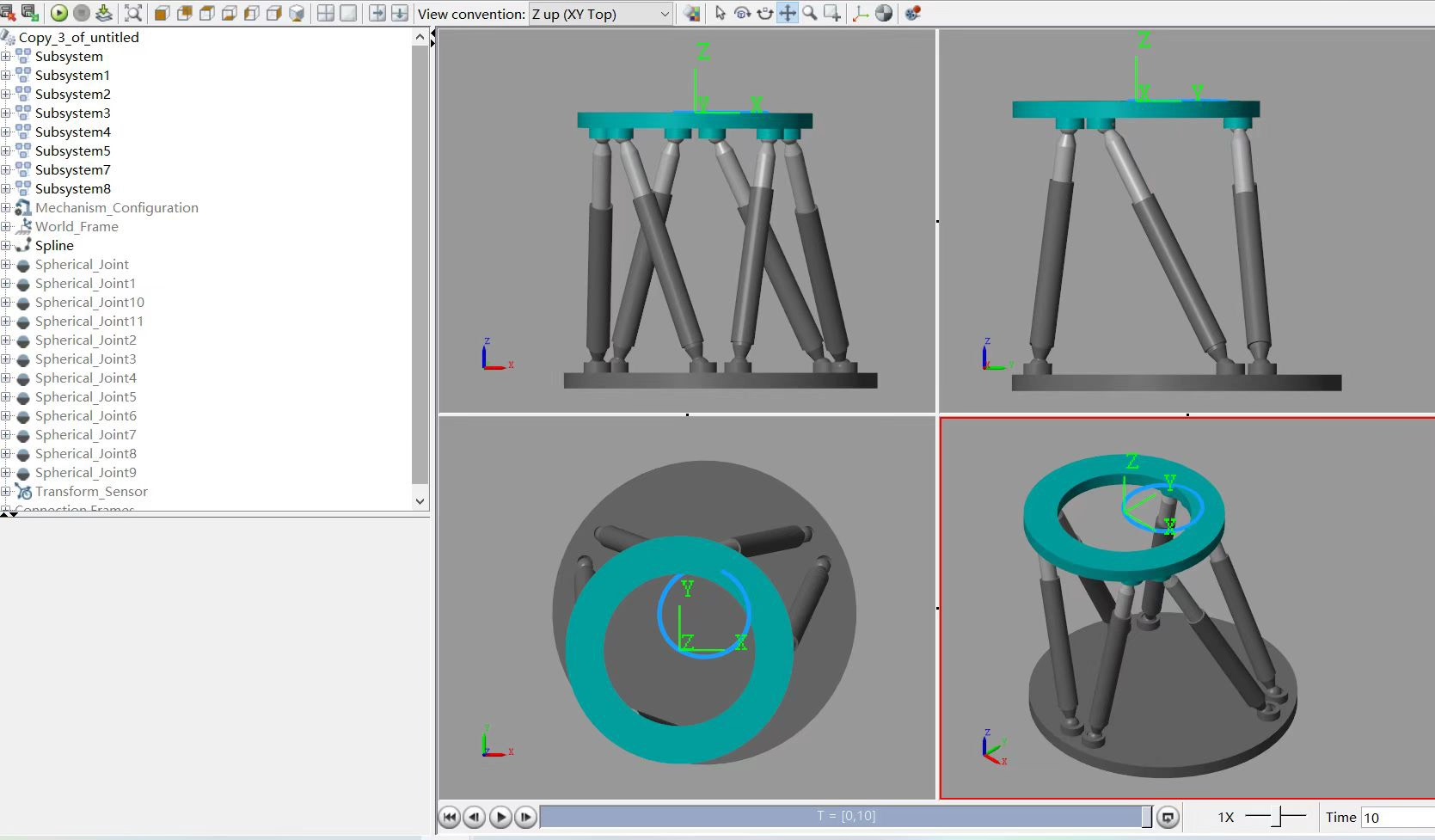 有了运动学和动力学基础,是时候来搞一搞酷炫的三维仿真了。通过三维仿真,我们可以直观地看到Stewart并联平台的运动情况,及时发现设计和控制中的问题。