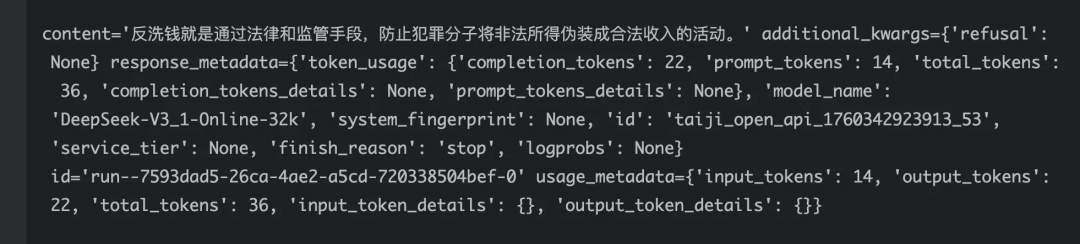 3、AIMessage(大模型消息,一般是模型返回的结果):大模型的输出,这是大模型对HumanMessage和SystemMessage的响应。它不仅包含生成的文本内容(content属性),还可能包含以下结构化信息(外部工具、调用令牌使用情况等元数据)。