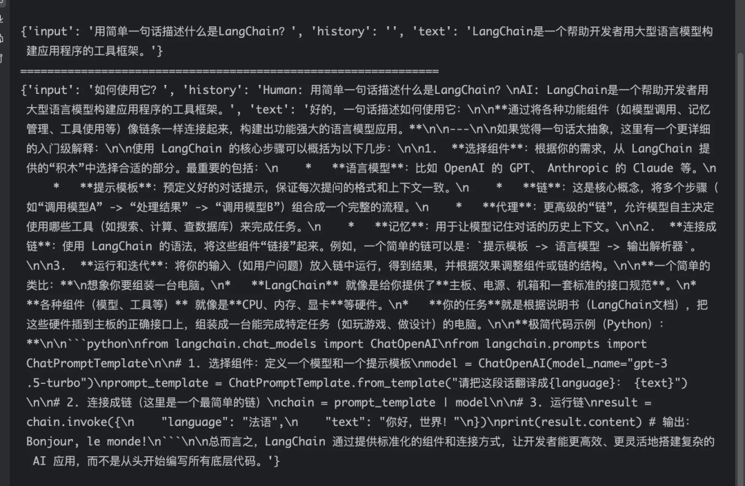 至此,关于LangChain的组件使用就介绍完了,上述内容仅仅只是对LangChain使用的简单介绍以及一些大模型应用开发相关的概念,如果需要更深入的理解LangChain,可以参考官方文档。作为一个初学者,上述内容如果有理解不准确或错误的地方,欢迎指正。如果文章对你有一点点帮助,辛苦点个赞吧🫡