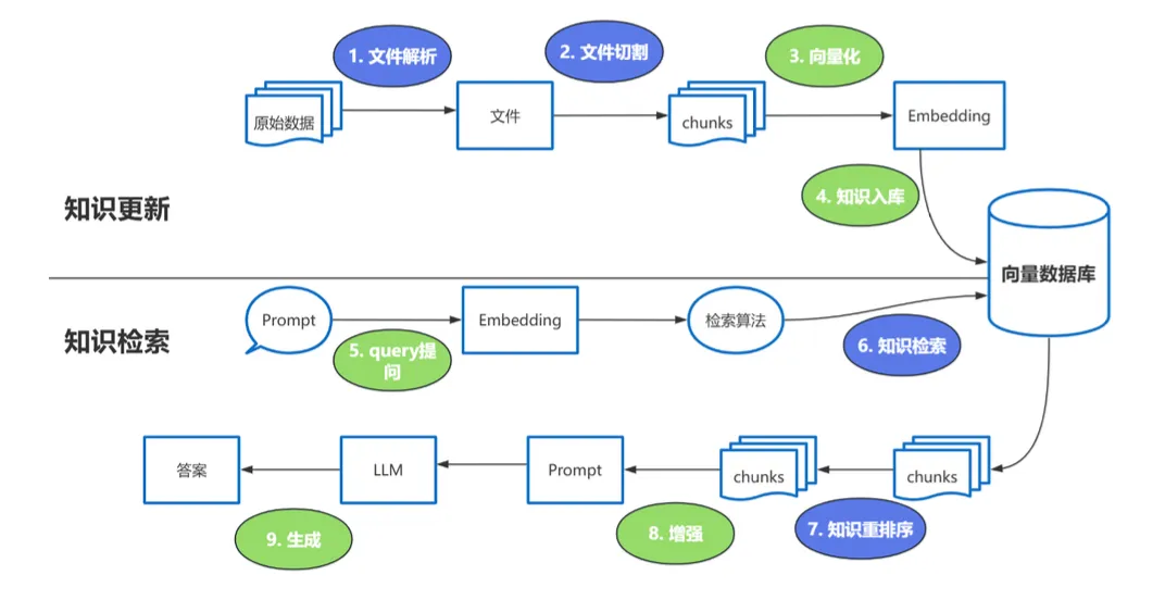 存储海量的专业知识(公司文档、知识库等),并能在需要时快速、准确地检索相关信息提供给“大脑”。它是一个巨大的私人图书馆或长期记忆仓库,当你需要解决一个专业问题时,你会来图书馆查阅相关资料,然后将这些资料带给大脑(LLM)进行参考和分析。