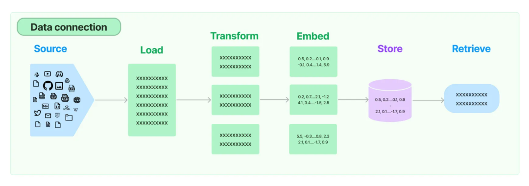 - Retrieval(检索,RAG核心):从大量的文档或数据源中查找相关信息的核心模块,它是构建RAG(检索增强生成)的基础。