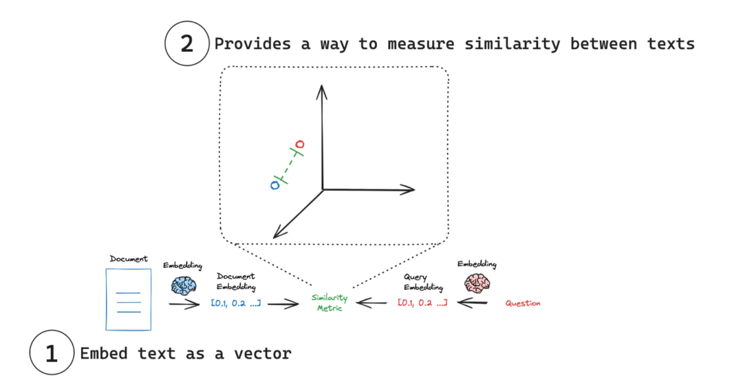 - 向量的查询 :查询时,嵌入非结构化查询并检索与嵌入查询“最相似”的嵌入向量。即具有相似性检索能力。