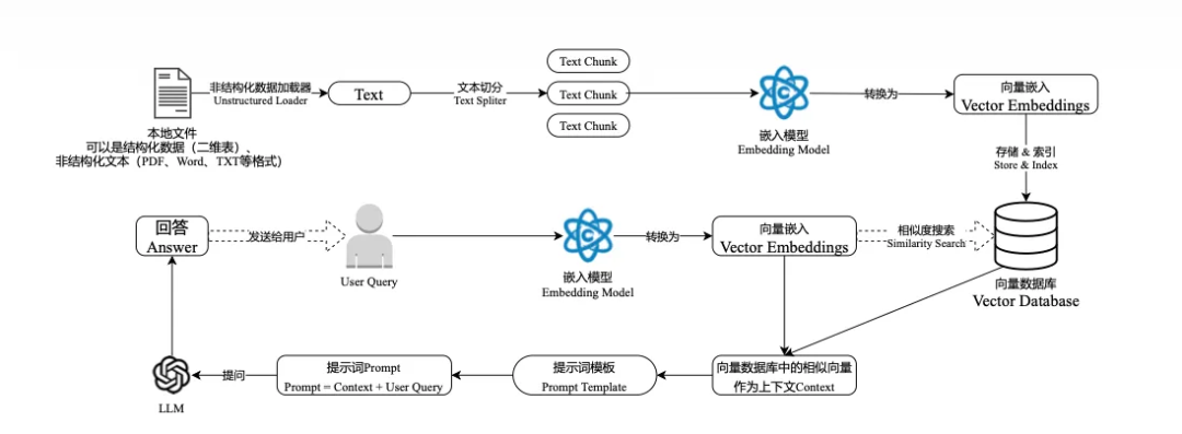 - 向量的存储 :将非结构化数据向量化后,存储在向量数据库。