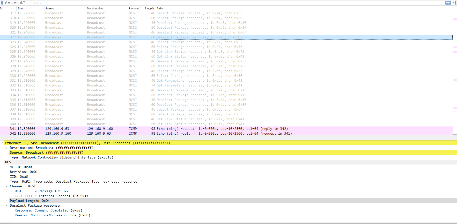 比如说,当收到Enable Broadcast Filter命令之后,固件除了需要回复这条命令之外,还需要打开广播包的过滤开关,让共享网口收到广播包之后,可以转发到BMC,这个是必须的,要不然,ARP报文都不通,外界也就无法Ping通BMC了。