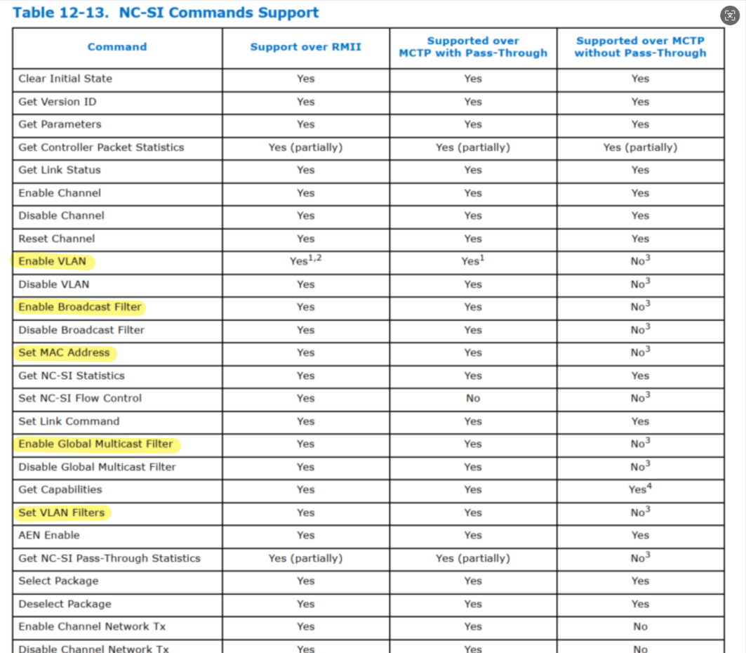 Set VLAN Filter命令和Enable VLAN命令配合使用,Set VLAN Filter会确定一个VLAN的ID号,意图是:只有符合该ID号的报文会发送给BMC,所以固件也必须在芯片的VLAN过滤寄存器作对应的配置。