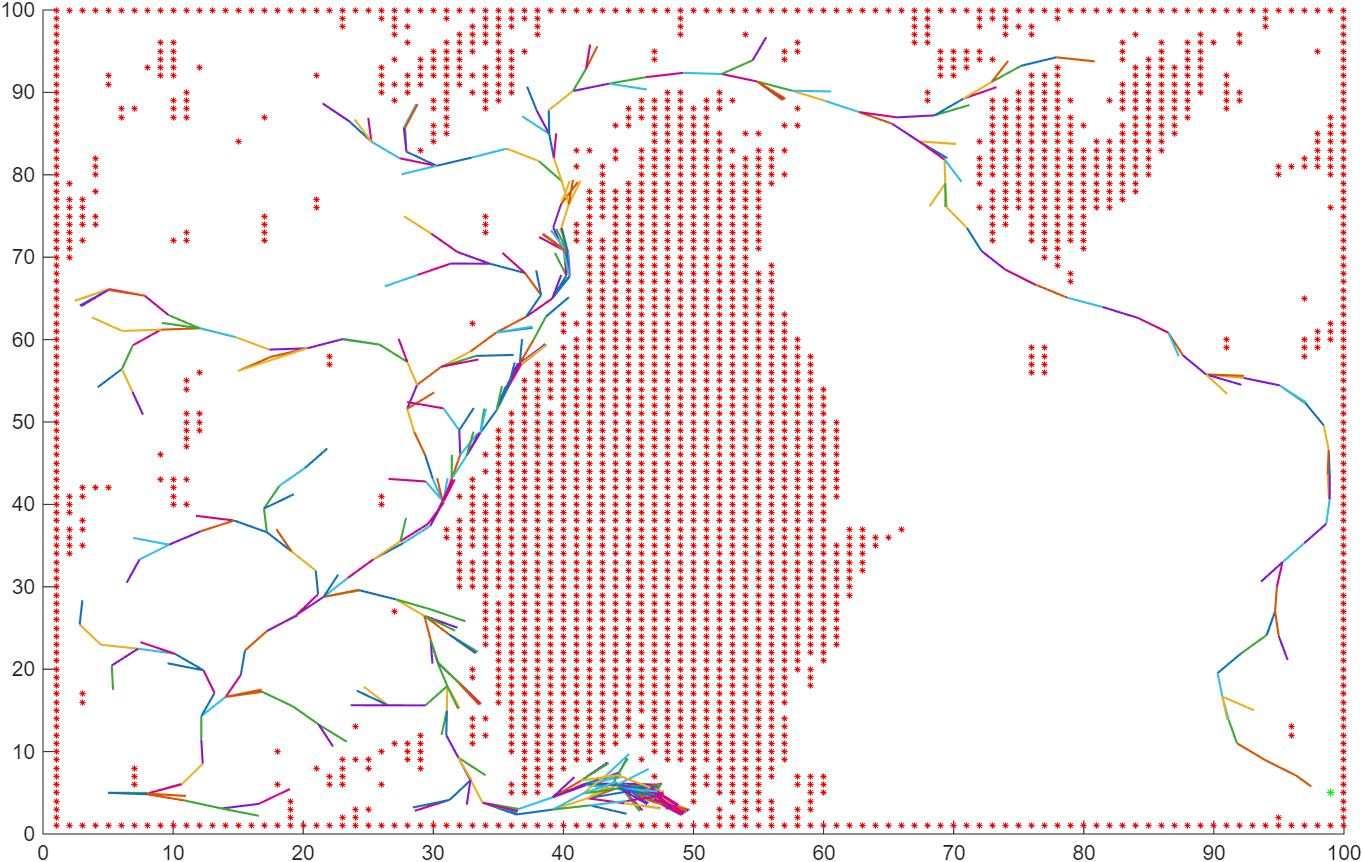 RRT算法的最大优势在于对复杂环境的适应性——无需预先知晓全部环境信息,能在含静态、动态障碍物的栅格地图中快速搜索路径,且具备概率完备性(理论上,只要存在可行路径,算法在足够时间内就能找到)。除了自主导航领域,RRT算法还广泛应用于工业机械臂避障、无人机航迹规划等场景。在含动态桥梁的栅格地图中,RRT的核心价值在于“快速探索多桥梁备选路径”——由于桥梁状态具有概率性,算法可通过多次随机采样,生成覆盖不同桥梁组合的多条备选路径,为后续应对桥梁状态变化提供路径基础。