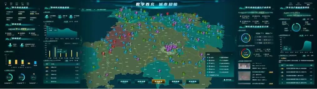 这一智能化应急管理体系,是“数字西充·城市超脑”版图中的生动缩影。作为城市运行的“智能中枢”,城市超脑指挥中心通过电子屏幕实时呈现着全县391个感知元件的运行状态,对城市热点事件进行精准分析与“一网统管”。在政务服务领域,平台成功整合了全省统一电子证照等37项便民应用与563项政务服务事项,并通过惠企政策服务平台实现政策“多选项”到企业“一目了然”的精准推送,让群众和企业真正体验到“掌上可查、指尖可办”的便捷。