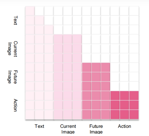 [text tokens ; current image tokens ; future image tokens ; action tokens]
