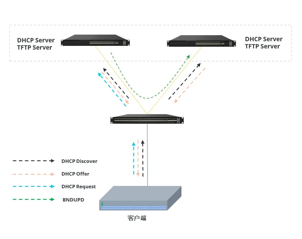 数据中心带外管理网传统需手动配置静态IP与VLAN,现可通过基于SONiC的交换机运行DHCP与TFTP服务,实现设备“即插即用”零配置上线。方案支持按物理位置自动分配IP,并具备双活DHCP服务器保障高可靠性。